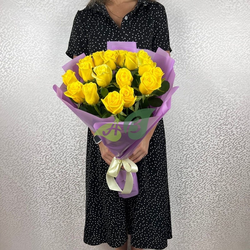 Количество желтых роз в букете вы можете выбрать сами (от 7 до 251). Мы составим композицию и доставим прямо в руки той, кого вы хотите поздравить с праздником роскошным цветами.